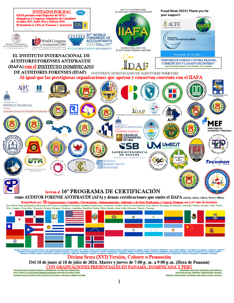 El Instituto Dominicano de Auditores Forenses realizó el curso taller titulado Auditoría Forense Aplicada a la Ley 155-17 de Lavado de Activos, los días 22 al 25 de octubre 2018. La finalidad de este taller fue proveer a los participantes la herramientas y técnicas necesarias para realizar auditoría forense, acorde a los requerimientos del Ministerio Público.