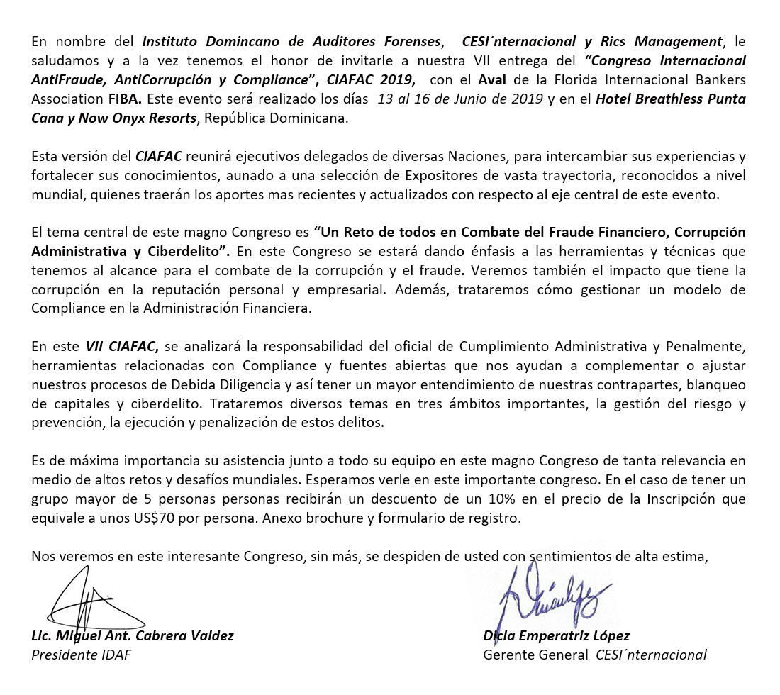 Leer más: CONGRESO INTERAMERICANO DE PREVENCIÓN DE LAVADO DE ACTIVOS Y DELITOS FINANCIEROS